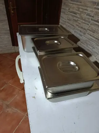 Set de contenedores para comida fabricados en acero inoxidable. - Diseño rectangular. - Tapas con asas integradas.