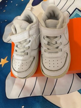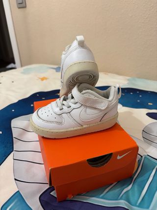 Zapatillas deportivas Nike para peques. Son blancas y muy cómodas. - Cierre de velcro. - Suela de goma. - Logo de Nike en el lateral.