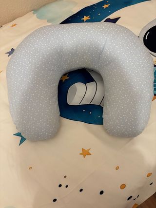 Cojín de lactancia con un diseño divertido de estrellas sobre fondo azul claro. Es cómodo y suave. - Diseño de estrellas blancas. - Color azul claro.