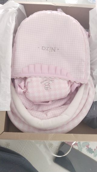 Carro de muñecas modelo Niza en color rosa. Presenta un diseño encantador con estampado de cuadros y detalles de la marca. - Interior forrado con tela de cuadros. - Incluye cojín reposacabezas con lazo. - Capota ajustable.