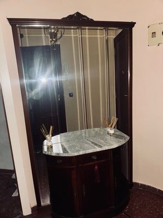 Elegante mueble recibidor con un diseño clásico y acabados en madera oscura. Perfecto para dar un toque de estilo a tu entrada. - Encimera de mármol. - Amplio espejo integrado. - Puertas y cajones para almacenamiento MUY IMPORTANTE: esta en Camas ( aunque yo vivo ennsantiponce), hay que ir a recogerlo tal cual, no hago envios. ESTA MONTADO, si te interesa, lo compras, vienes, lo desmontas y te lo llevas. ME URGE QUITARLO RAPIDO. En unos dias si no surge comprador ira al punto limpio.