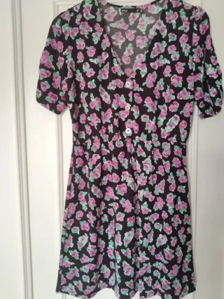 Vestido floral Lefties negro y rosa