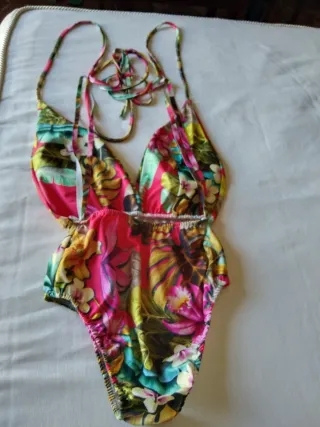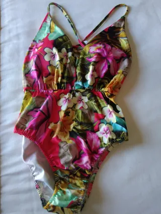 Bodi con un vibrante estampado floral. - Diseño cruzado en la parte delantera. - Tirantes finos. - Cintura elástica.