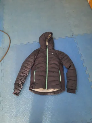 Chaqueta acolchada Quechua para niño. Perfecta para el frío. -Talla 10 años - Color azul marino. - Cremallera central y bolsillos laterales con cremallera. - Capucha integrada.