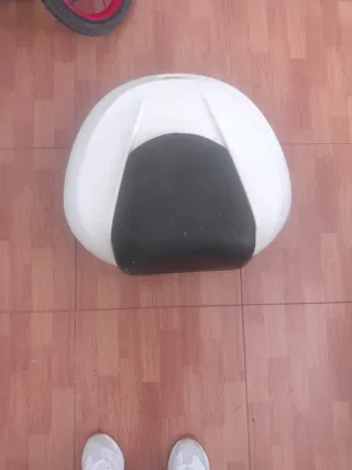 Baúl de moto con un diseño moderno y funcional. - Color blanco y negro. - Asiento acolchado.