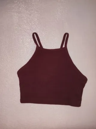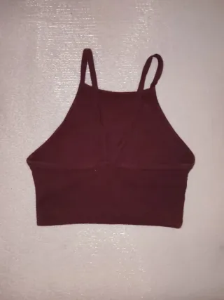Top de tirantes en color granate. - Diseño halter. - Tejido elástico.