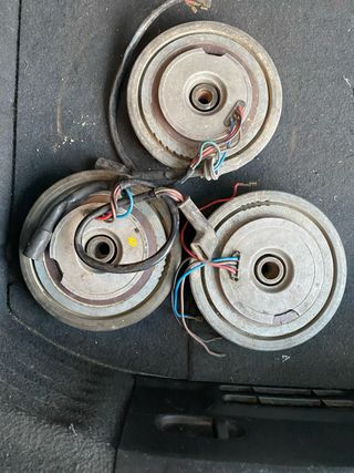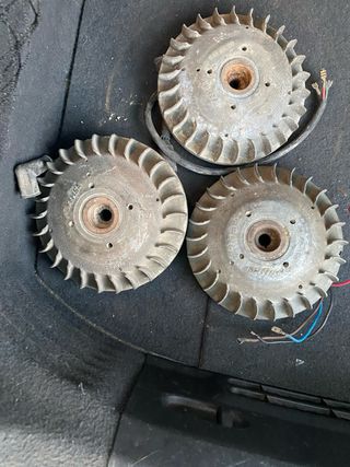 Conjunto de tres volantes magnéticos para Vespa. Piezas de repuesto para tu moto. - Tres unidades incluidas. - Diseño con aletas para ventilación. - Centro metálico con orificio.