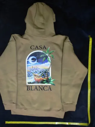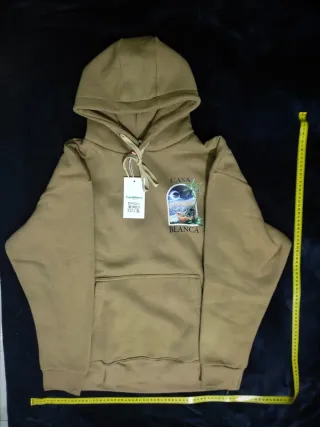 Sudadera con capucha y bolsillo frontal. Presenta un diseño gráfico en la parte delantera. - Capucha con cordones. - Bolsillo tipo canguro. - Estampado frontal con paisaje y texto CASA BLANCA.