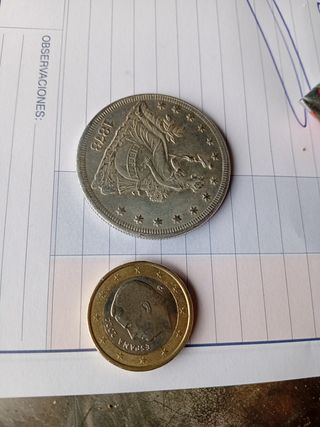 Réplica de moneda tipo Dólar Morgan con fecha de 1878. Ideal para coleccionistas. - Diseño detallado. - Acabado plateado.