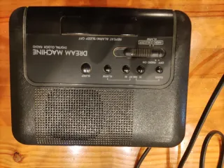 Radio despertador Dream Machine en color negro. Funciona con pilas y electricidad. - Función de radio AM/FM. - Alarma con opción de radio o buzzer. - Botón Snooze para repetir alarma. - Función Sleep para apagar la radio automáticamente.