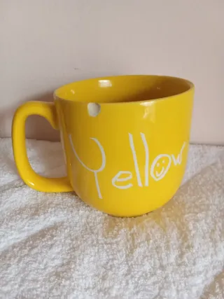Taza con diseño divertido de M&M's. - Personaje de M&M's amarillo. - Asa para sujetar cómodamente. Tiene dos desconchados.