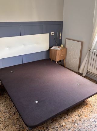 Base de somier tapizada gris traspirable, completamente nueva y con 8 patas - Medidas: 150x190 cm. - Tapizado en tela.