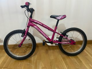 Bicicleta infantil de la marca Megamo, ideal para los mas pequeños. Su diseño es llamativo y está pensada para la diversión. Está practicamente sin uso, ni un solo arañazo. Comprada nueva en junio del 2023. Bicicleta ideal para niñas entre 5-7 años o entre 100-120 cms de altura. -Ruedas de 18 pulgadas. -Cuadro de acero. -Frenos V-Brake. -Cubrecadena. -Sillin Bassano con agarradero para ayudar a los niños. -Timbre. -Cesta. Venta en persona.