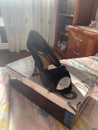 Elegante zapato de fiesta. - Diseño con lazo y fruncido. - Tacón de aguja. - Punta abierta.
