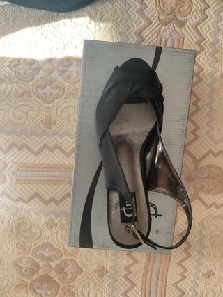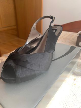 Elegante sandalia de fiesta. - Diseño peep toe. - Tira trasera con hebilla. - Material satinado.