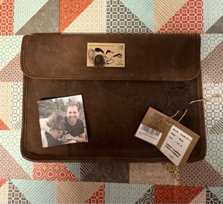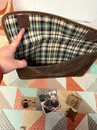 Funda de cuero Gusti Leder, ideal para portátil o documentos. - Interior forrado con tela a cuadros. - Cierre de velcro en la solapa. - Compartimentos interiores. - Regalo porta auriculares.