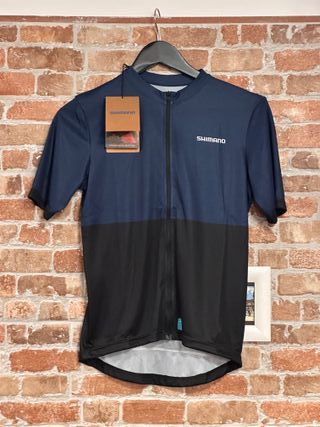 Maillot de ciclismo Shimano Element en color azul y negro. NUEVO Talla S "Materiales reciclados ligeros se ajustan cómodamente en cualquier posición. "Cremallera de longitud completa para ventilación. "Tres bolsillos traseros, con detalles reflectantes en el bolsillo central. "Mangas suaves se mantienen cómodamente en su lugar. "Cuerpo principal: 100% poliéster reciclado.
