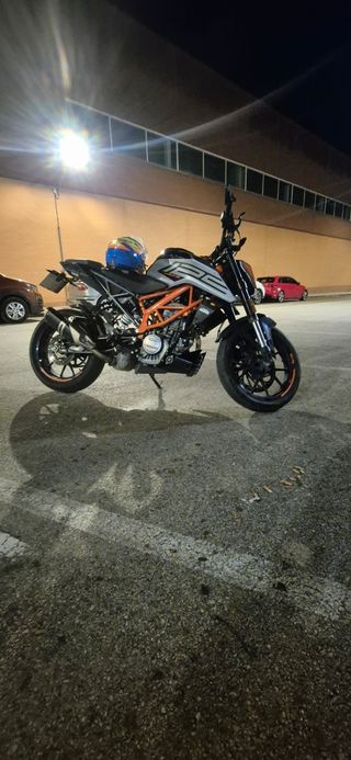 Moto deportiva KTM 125 Duke en color gris y naranja. Ideal para moverse por la ciudad 33000 km.