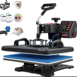 Plancha térmica multifunción para sublimación y transfer. - Incluye accesorios para tazas, platos y gorras. - Panel digital para control de tiempo y temperatura. - Diseño abatible para facilitar el uso.