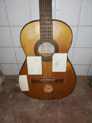 Guitarra clásica antigua con detalles de desgaste propios del tiempo. - Cuerpo de madera. - Diapasón con trastes. - Cuerdas de nylon.recoger en mano gracias 641951583