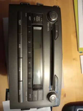Radio original para Toyota Auris del año 2008. - Modelo con pantalla LCD. - Botones de control de volumen y sintonización. - Funciones de búsqueda de emisoras (Seek/Track) y modos (AM/FM). - Compatible con CD y radio. - Incluye botones para TA, AF, PTY y DISC.