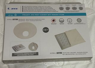 Almohada ergonómica de la marca Jane, diseñada para la prevención y el descanso de bebés. Cuenta con dos etapas de uso y es desenfundable. En buen estado, con muy poco uso. - Etapa 1: Prevención de malformaciones craneofaciales simples (0-4 meses). - Etapa 2: Protección y descanso (0-36 meses). - Material interior: Viscoelástico / Memory Foam. - Tejido: 100% Algodón. - Antibacteriana y transpirable.