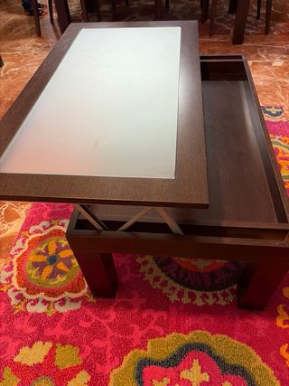 Mesa de centro elevable madera y cristal
