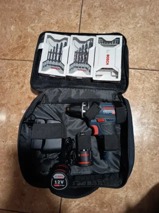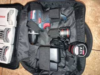 Taladro atornilladora Bosch GSR 12V-15 profesional con dos baterías y cargador dos cajas de brocas una para madera y otra para hierro y una de puntas y bolsa de nailon. NO NEGOCIABLE