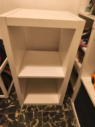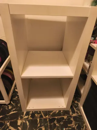 Estantería de dos módulos con un diseño moderno y funcional. Ideal para organizar tus libros, objetos decorativos o cualquier cosa que necesites tener a mano. - Dos niveles de almacenamiento. - Estructura robusta y estable.