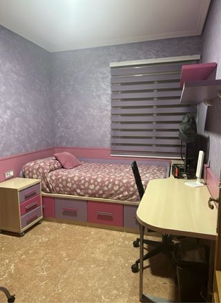 Vendo conjunto de muebles de alta calidad en madera clara, lila y rosa. Muy bien cuidados. Incluye: • Cama Nido: Con 4 cajones profundos. (2x1m) • Escritorio: Diseño curvo con zapatero extraíble oculto. (2’20m largo) • Mesita: 3 cajones y ruedas para fácil limpieza. (55cm altura 42cm ancho) • 2 Estanterías: A juego para pared. (1’20m largo 30cm ancho) Muebles muy robustos y funcionales para aprovechar el espacio. Se ayuda a desmontar!!!! ¡Escríbeme para mas informacion y venir a verlos!