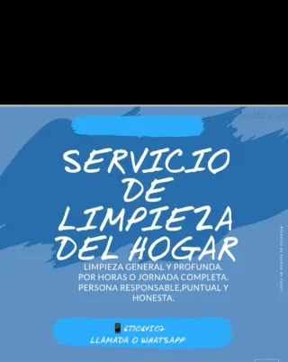 Servicio de limpieza de casas, patios y oficinas por horas o días sueltos. Persona responsable y puntual. ✔ Limpieza general ✔ Cocinas y baños ✔ Patios y terrazas ✔ Oficinas y despachos Zona: Baeza y alrededores (posibilidad de desplazamiento). 💰 Precio a consultar según servicio. 📲 Contacto por chat de Wallapop o WhatsApp