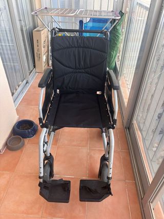 Silla de ruedas marca Breezy de aluminio plegable, bolso, reposapies elevables. IMPECABLE. Con bolsa y capa para la lluvia. Recogida Alboraya.