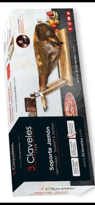 Detalles adicionales 56 × 20 cm Material: Base: Madera de Bambú Cuerpo: Madera de Bambú Soporte: Desmontable Metal: Plegable Presentación del Producto: Caja – Jamonero fácil de plegar. Ayuda a ahorrar espacio de almacenamiento. Pincho en la base con 2 posiciones diferentes para sujetar el jamón según el tamaño del jamón (jamón o paleta). La base tiene 4 topes de goma antideslizantes, lo que la hace más estable. Cabezal giratorio Le permite girar el jamón con facilidad. Base de madera de bambú tratada, cómoda de limpiar. Jamonero recomendado por el campeón de España de corte de jamón José Hidalgo. Totalmente Nuevo. Sin Usar.