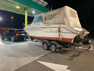Movemos tu barco de hasta 8 metros. nacional e internacional. transporte de barcos con remolque RIBA 2500 con cuna custom y suspension.