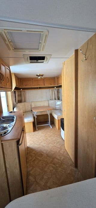 caravana de 2 ambientes. 5,40 metros Año 2006 (está como nueva , utilizada en muy pocas ocasiones) Ruedas recién cambiadas Mosquiteras en todas las ventanas Baño completo con ducha Aire condicionado, calefacción, nevera trivalente. cama de matrimonio y salón convertible (con cama de 2*2) colchones nuevos cocina, carpa, 3 mesas, sillas, toldos... todo el exterior comprado nuevo hace menos de 1 año.
