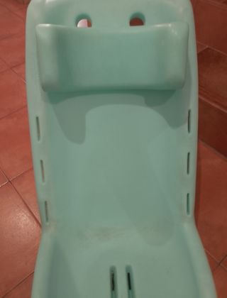 Silla de baño de PVC muy resistente con apoyacabezas con diferentes alturas. Se puede meter incluso dentro de la bañera llena de agua. Tiene diferentes opciones para poder poner correas. Ancho asiento 30'5 Ancho total 40 Alto del asiento 20 Alto respaldo 60 Alto total 56'5 Largo total 90