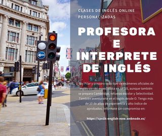 Licenciada en Traducción e Interpretación de inglés y Máster en Secundaria (antiguo CAP)da clases particulares de ingles a todos los niveles (Selectividad, Refuerzo, B1, B2, Trinity, APTIS, conversación). Me adapto a cualquier necesidad del alumno. Amplia experiencia (+ de 10 años) y con un 100% de aprobados. Pregunté sin compromiso para darle más referencias.