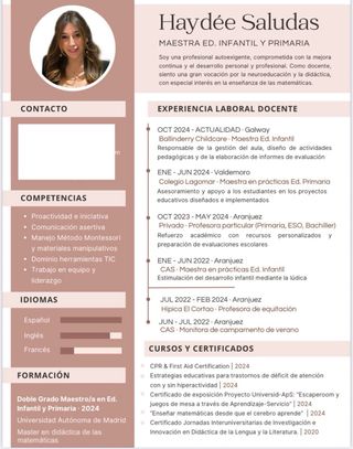 Ofrezco mis servicios como profesora particular para niños diferentes áreas . Cuento con tres años de experiencia enseñando a niños de diferentes edades, ayudándolos a desarrollar su comprensión, mejorar su rendimiento académico... Mi enfoque se basa en una enseñanza, adaptada a las necesidades y ritmo de cada estudiante. Además, busco que cada clase sea una experiencia positiva y motivadora, ayudando a los niños a fortalecer su autoestima y confianza en sus capacidades. Soy estudiante de Educación Primaria y me encanta enseñar a niños.