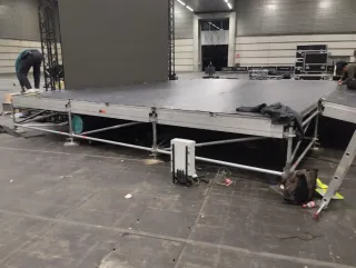 Montaje de escenarios pequeños con material tubular layher para eventos como cumpleaños y otros eventos