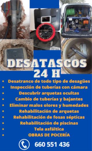 Desatrancos Desatascos Cambio de bajantes y tuberías Localizar arquetas ocultas Hacer arquetas nuevas Eliminar malos olores y humedades Tela asfáltica 660551436