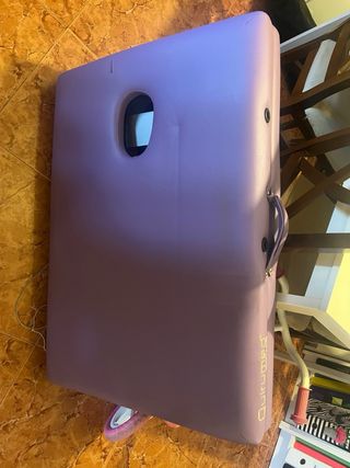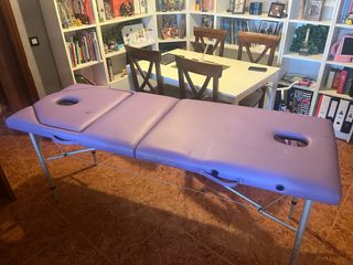 Algunas manchas de uso, su precio en tienda quirumed es de 91€ (lo pone en las fotos) Regalo bolsa de transporte y almacenaje protectora. Medidas camilla montada: Largo: 186 cm Ancho: 60 cm Altura: 57-76 cm Medidas camilla plegada: Largo: 93 cm Ancho: 60 cm Altura: 22 cm Otros: Perfil del tapizado: 7 cm Grosor del acolchado: 5 cm Resistencia en trabajo: 150 kg Peso: 12,5 kg