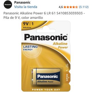 Pack de 9 pilas alcalinas Panasonic de 9V. Las pilas caducan en 2028 - Voltaje: 9V - Tipo: Alcalina - Modelo: LR1