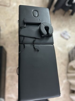 Vendo camilla de masaje/fisioterapia plegable y portátil, en perfecto estado y con muy poco uso. Tapizada en polipiel negra de alta calidad, fácil de limpiar y muy cómoda. Medidas: • Largo: 180 cm • Ancho: 70 cm • Altura: 67 cm Incluye: • Agujero facial integrado • Cojín facial ergonómico • Reposabrazos laterales • Sistema plegable con asas y cintas de transporte Ideal para fisioterapia, masajes, estética, tatuaje o uso profesional a domicilio. Muy estable y cómoda, prácticamente nueva. Se puede ver y probar sin compromiso. No envios