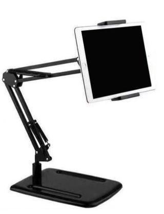 Si quiere ir haciendo otra cosa mientras obtiene contenido desde su teléfono o tableta, presentamos este soporte de sobre mesa flexible para móvil o tablet. , Tiene un brazo flexible que se puede estirar, subir, bajar o girar según conveniencia. , Es perfecto para cuando quiere ver una peli o serie, hacer vídeo llamadas, leer u obtener cualquier otro tipo de información desde su dispositivo pero sin necesidad de sujetarlo con las manos. , Válido para aparatos de 4'' a 10,6''. Medidas: 25 cm de cada tramo del flexo. , Medidas de la base: 26,5 cm de largo x ancho 19,5 cm de ancho. Altura máxima: 60 cm. Modelo: V-6762. ,