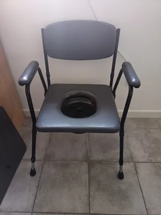 Silla de ducha portátil con asiento y respaldo acolchados. - Estructura de metal y plástico. - Altura ajustable en las patas.