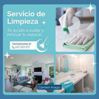 ✨ Servicio de limpieza por horas Trabajo con cuidado y atención, enfocada en entregar el mejor resultado posible dentro del tiempo acordado. 📌 Busco clientes fijos, semanalmente, con reserva mínima de 4 horas 🧺 No plancho ropa ni cocino 🧽 Uso los productos que proporciona el cliente ⏰ Agenda combinable según disponibilidad 📩 Escríbeme para consultar disponibilidad y reservar tu limpieza