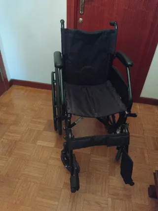 Silla de ruedas ligera y plegable, ideal para facilitar la movilidad. Su diseño permite un transporte y almacenamiento sencillos. Silla totalmente nueva estrenar como otros productos que tengo puestos en el perfil. - Estructura metálica. - Asiento y respaldo de tela. - Reposapiés ajustables. - Ruedas traseras y delanteras.