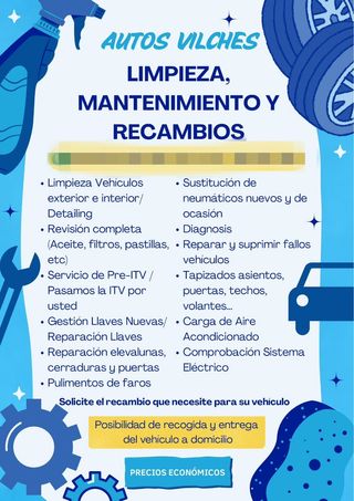LIMPIEZA y DETAILING de vehículos profesional , con servicio gratuito de recogida y entrega a domicilio. Deja su coche o moto como el primer día de limpieza al mejor precio. Tratados especiales a cada tapicería y techo de su coche. También mantenimientos de mecánica rápida, servicio preitv e ITV. Diagnósis , electromecánica y llaves. Especialistas en Limpieza y DETAILING al mejor precio. De su vehículo. Desde 30€ Pulimento de faro. Y servicios de restauración del vehículo.