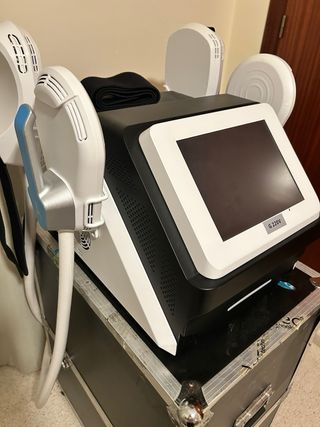 Equipo de estética EMSculpt para tratamientos corporales. - Diseño moderno y compacto. - Pantalla táctil intuitiva. - Incluye aplicadores de diferentes tamaños. Alquiler por días o mes completo