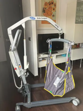 Grúa ortopédica eléctrica Invacare Birdie Compact (150 kg) 📝 Descripción Se vende grúa ortopédica eléctrica Invacare Birdie Compact, en muy buen estado y totalmente funcional. Ideal para el traslado y movilización de personas con movilidad reducida en domicilio o centros sociosanitarios. 🔹 Marca: Invacare 🔹 Modelo: Birdie Compact 🔹 Capacidad máxima: 150 kg 🔹 Funcionamiento: Eléctrico, con mando 🔹 Plegable y compacta, fácil de guardar y transportar 🔹 Incluye arnés, tal como se ve en las fotos 🔹 Muy estable y segura Se ha usado poco y está bien cuidada. 📍 Se puede ver y probar sin compromiso (ubicación Ciudad Real)